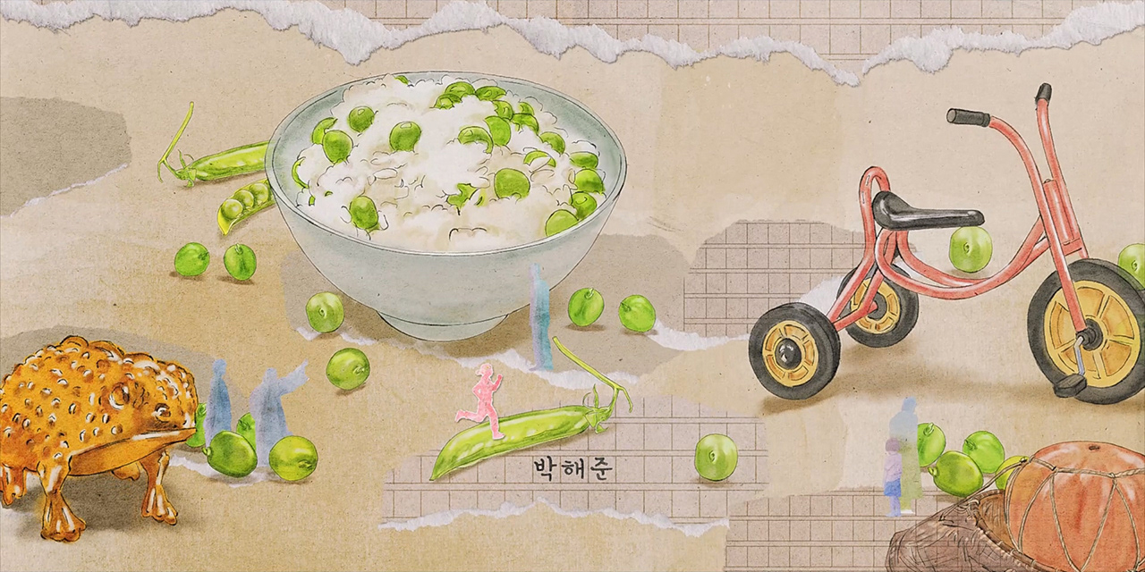 그녀의 꿈인 ‘시’가 쓰인 원고지 위에 손그림과 종이 꼴라주를 활용해 드라마에 담긴 휴머니즘을 표현했습니다.